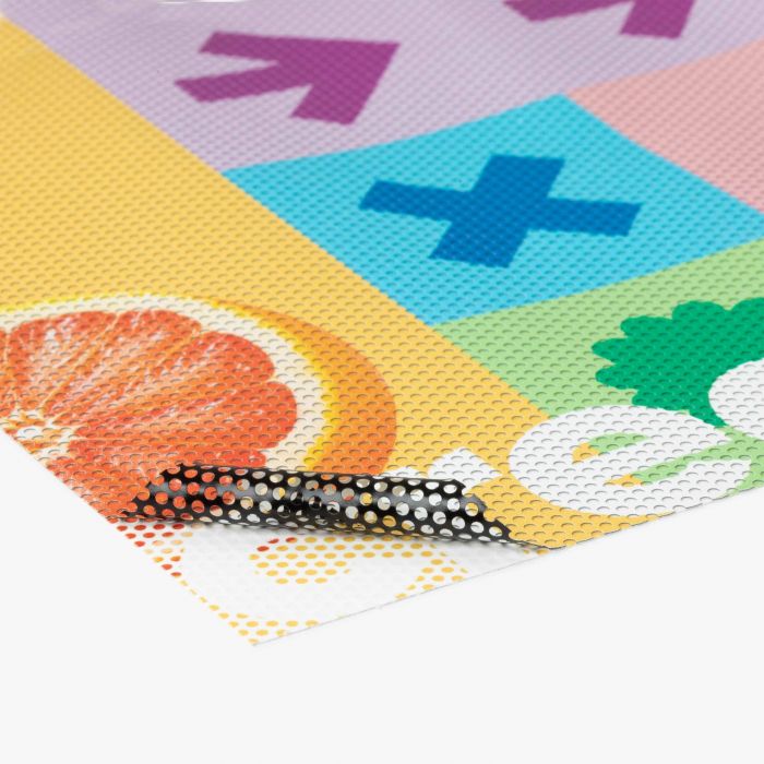 One-Way Vision folie Permanent is een zelfklevende geperforeerde folie met een permanente lijmlaag die opvallende full-color visuals toont aan de buitenzijde terwijl je van binnenuit zicht behoudt. Dankzij de permanente hechting blijft jouw boodschap langdurig op glas of andere vlakke ondergronden zitten, waardoor deze folie perfect is voor winkelramen, vitrines en voertuigen waar zowel zichtbaarheid als functioneel doorkijk vereist zijn.